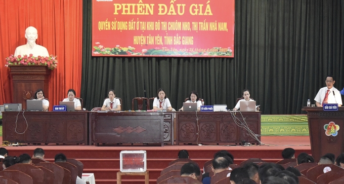 Phiên đấu giá 60 lô đất tại khu Chuôm Nho,thị trấn Nhã Nam,huyện Tân Yên. Ảnh: Cổng thông tin điện tử huyện Tân Yên