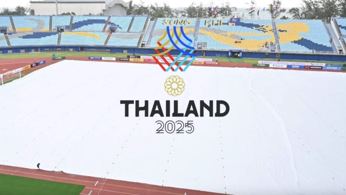 Sân Tinsulanon ở Songkhla là nơi tổ chức bảng B môn bóng đá nam SEA Games 33,trước khi phải chuyển địa điểm vì lũ lụt lịch sử. Ảnh: Thairath.
