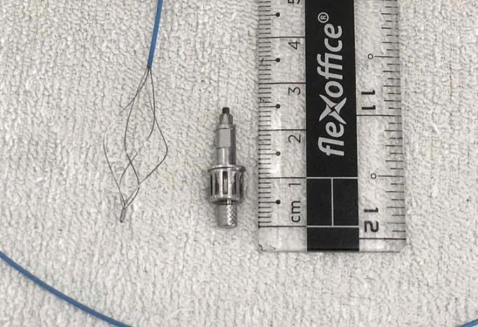 Dị vật là dụng cụ nha khoa kim loại sau khi được lấy ra. Ảnh: Bệnh viện cung cấp