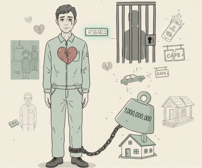 Đến tháng 5 năm nay,số tiền cô vợ vay đã lên hơn một tỷ đồng. Chiếc xe máy đang đi,vợ cũng bán nốt. Mẹ vợ phải bán đất,bán cả nhà đang ở để trả nợ nhưng vẫn không đủ; bên nội cũng phải vay nhiều nơi để bù thêm. Tôi cứ nghĩ sau từng ấy bài học lớn,vợ sẽ từ bỏ lô đề,cờ bạc. Rồi một ngày vợ bị tạm giam vì liên quan đến đánh bạc online. Vợ chỉ kịp nhắn một tin rằng phải đi xa một thời gian,nhờ bà nội chăm sóc con.