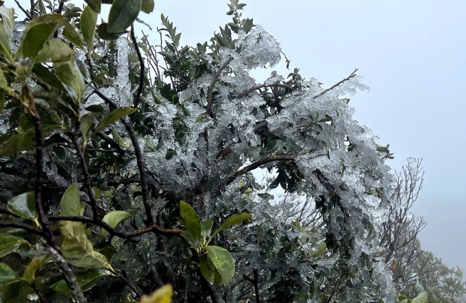 Băng giá trên đỉnh Mẫu Sơn ngày 22/1. Ảnh: Đinh Văn Quyết