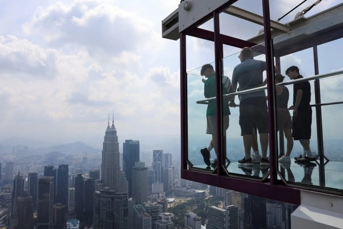 Du khách ngắm đường chân trời của Kuala Lumpur từ đài quan sát. Ảnh: Reuters