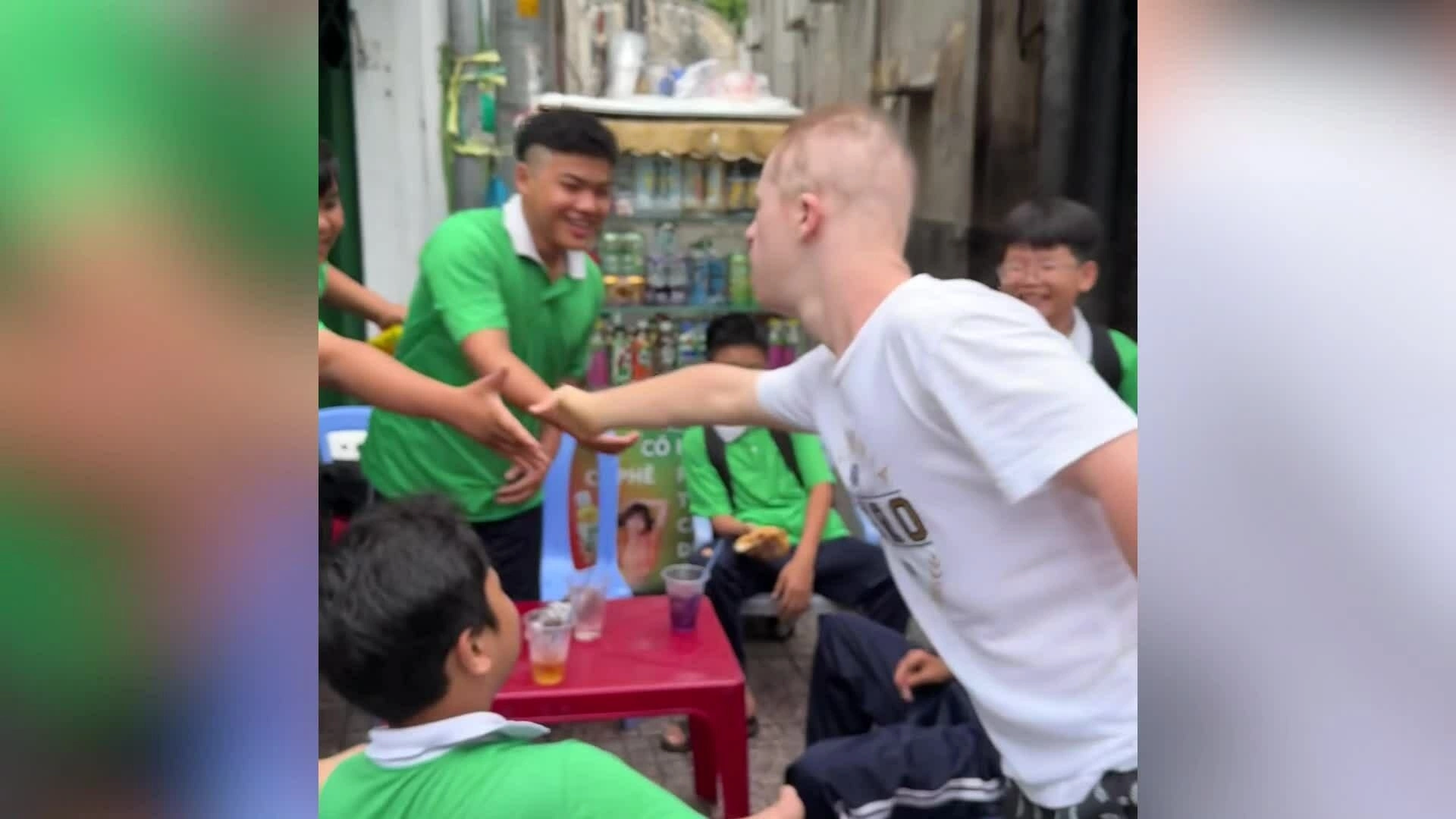 Lo lắng con trai mắc hội chứng Down có thể bị kỳ thị khi đi du lịch, ông Alan Hitzroth vỡ òa khi chứng kiến cái nắm tay, ôm hôn và nụ cười chào đón của những đứa trẻ trên đường phố Sài Gòn.